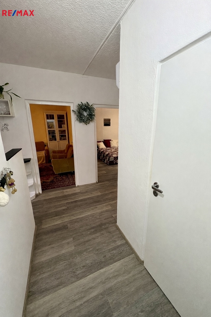 Byt se nachází ve 4. patře domu bez výtahu (instalace výtahu je plánována na začátek roku 2027). Podlahy jsou vinylové, což zajišťuje moderní vzhled a snadnou údržbu.